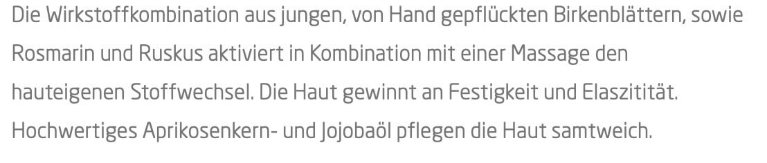 Meine Kollegin, ██████ ███████████████, hat mir Ihre Anfrage zu unserem Birke Cellulite-Öl weitergeleitet.